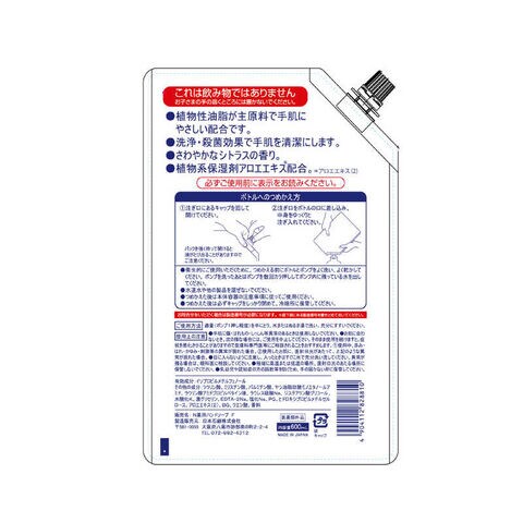 植物系油脂が主原料で手肌にやさしい配合です。洗浄・殺菌効果で手肌を清潔にします。植物系保湿剤アロエエキス配合。