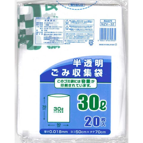 日本技研工業 容量表記ごみ収集袋 [30L /20枚 /半透明]
