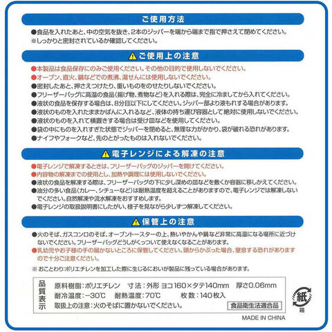 ダイワ物産 大増量WジッパーフリーザーバッグS 140枚