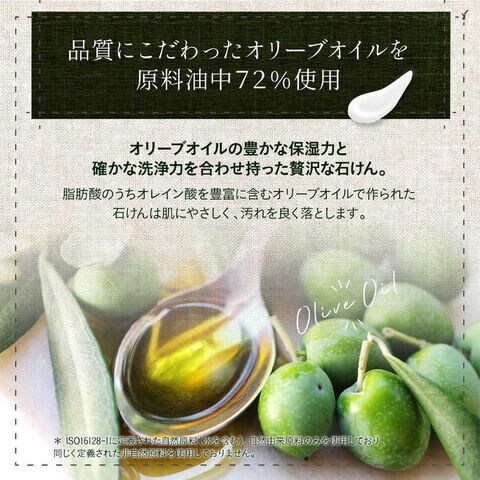オリーブオイルの豊かな保湿力と洗浄力を併せ持つ贅沢な石けん