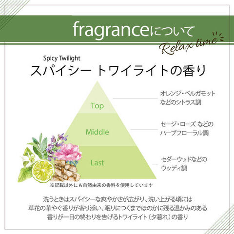 ●スパイシートワイライトの香りで、一日の終わりをのリラックスタイムを演出します。