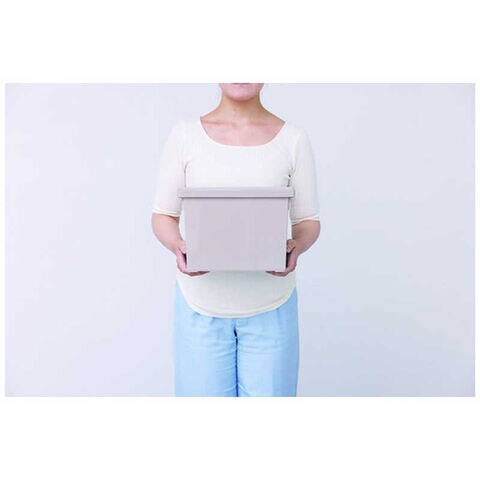 背伸びして取り出すような棚には取っ手付きの収納ボックスが便利です。キッチンの吊り戸棚でも大活躍します。