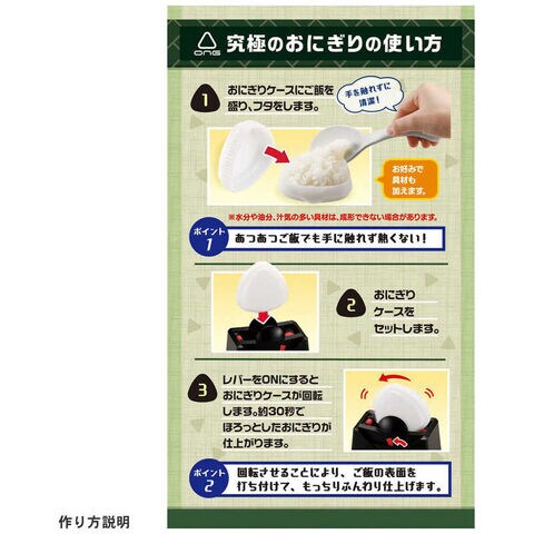 スイッチをオンにして30秒~1分でお好みの固さにおにぎりを握れます。