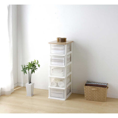 アイリスオーヤマ IRIS OHYAMA ウッドトップチェスト 5段 スリムタイプ (フレンチオーク/約幅32.4×奥行41×高さ101.8cm)