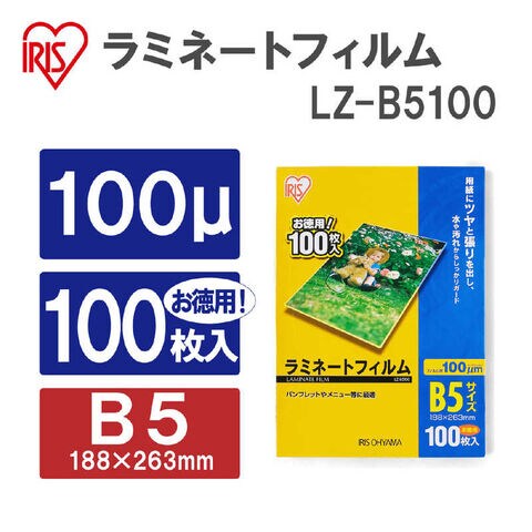 アイリスオーヤマ IRIS OHYAMA 100ミクロンラミネーター専用フィルム(B5サイズ・100枚) [LZB5100] LZ-B5100