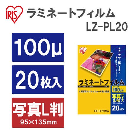 アイリスオーヤマ IRIS OHYAMA 100ミクロンラミネーター専用フィルム(写真Lサイズ・20枚) [LZPL20] LZ-PL20