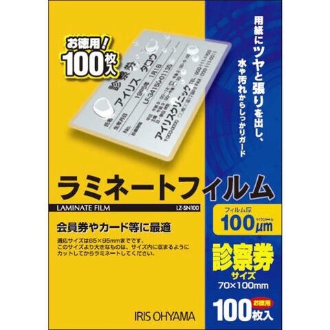アイリスオーヤマ IRIS OHYAMA 100ミクロンラミネーター専用フィルム(診察券サイズ・100枚) LZ‐SN100