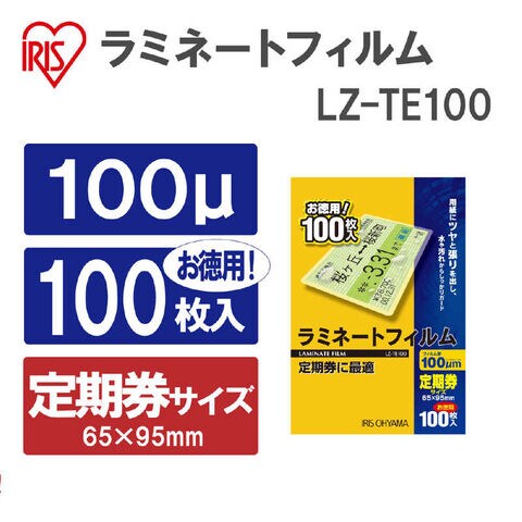 アイリスオーヤマ IRIS OHYAMA 100ミクロンラミネーター専用フィルム(定期券サイズ・100枚) [LZTE100] LZ-TE100