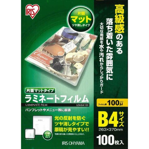 アイリスオーヤマ IRIS OHYAMA 100ミクロン片面マットラミネーター専用フィルム (B4サイズ 100枚) LZMB4100