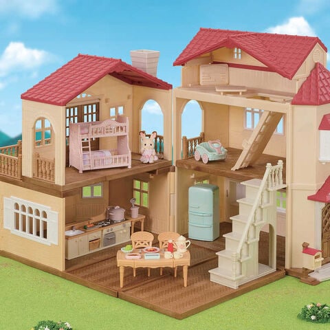 「赤い屋根の大きなお家」にぴったりの家具とお人形のセットです。