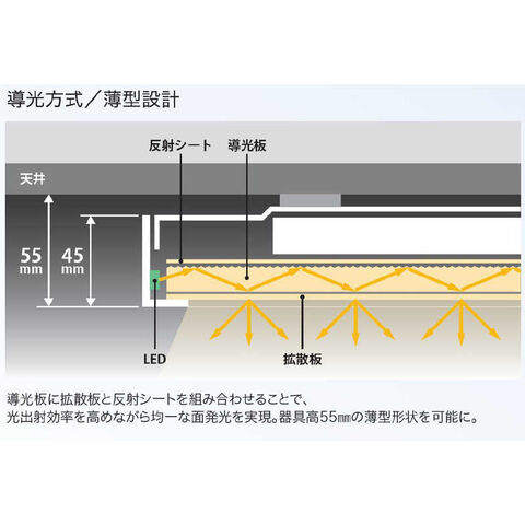 直付けでありながら埋め込み器具のような存在感と、均一な発行面を持ち合わせた薄型シーリングライトでリビング・ダイニングをコーディネートすれば、空間のシンプルな美しさも一層際立ちます。