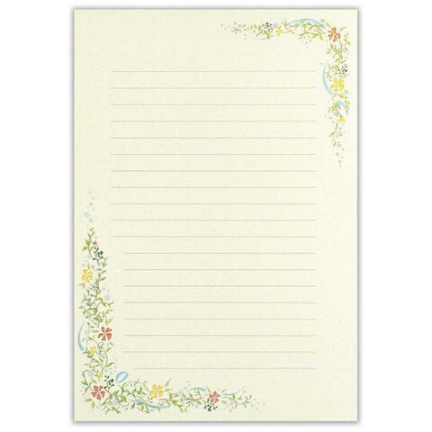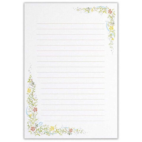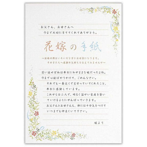 花嫁の感謝の気持ちが伝わる美しい草花で彩られた2色の便箋です。書いた時のイメージがしやすいよう、表紙に文例を載せました。婚礼用にオススメです。