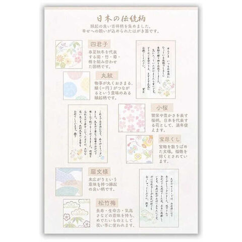 四君子 扇文様 小桜 宝尽くし 丸紋 松竹梅 縁起 縦書き ポストカード 和風 和柄 日本の伝統柄)