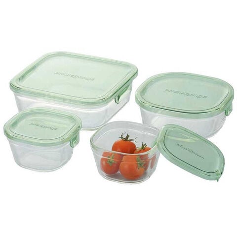 AGCテクノグラス iwaki 耐熱ガラス 保存容器 角型 4個セット パック&レンジ グリーン PS-PRN-4G1
