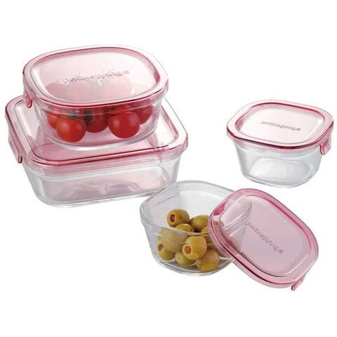 AGCテクノグラス iwaki 耐熱ガラス 保存容器 角型 4個セットパック&レンジ ピンク PS-PRN-4P1