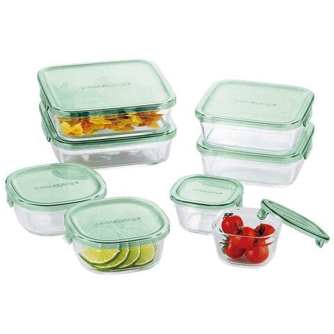 AGCテクノグラス iwaki 耐熱ガラス 保存容器 角型 8個セット パック&レンジ グリーン PS-PRN-8G