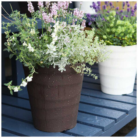 波状の曲線と漆喰のような表面加工が特徴で、オリーブやシンボルツリー、バラなどの鉢植えに最適です。
