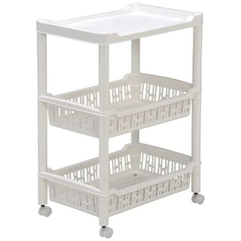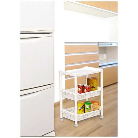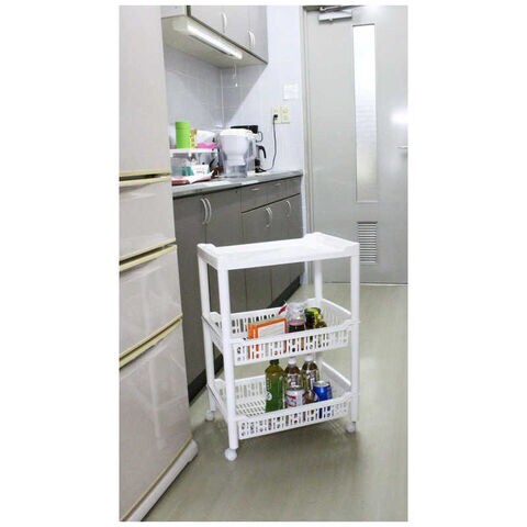 ●調味料や食材のストックなどの収納に最適な、樹脂製の3段ワゴンです。