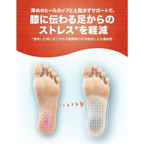 ●土踏まずサポート付きの深めのヒールカップが、かかとにかかる圧力を減らします。