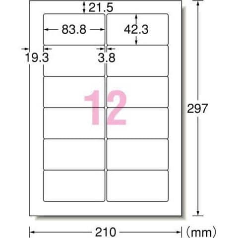 エーワン インクジェットプリンタラベル(A4サイズ・12面標準・100シート) 28916