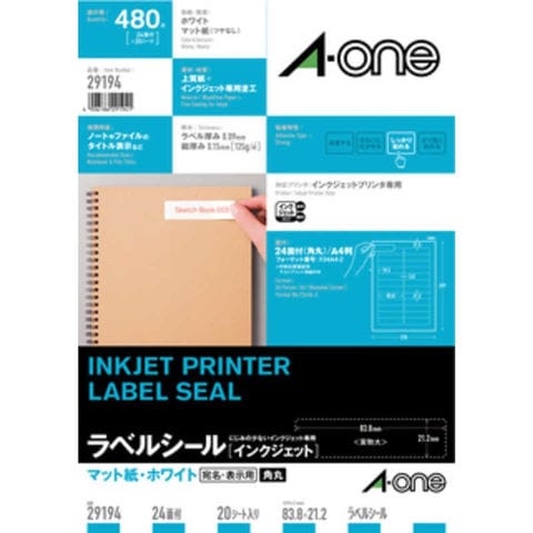 エーワン インクジェットプリンタラベル ~四辺余白付~(A4サイズ・24面・20シ-ト) 29194