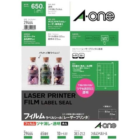 エーワン ラベルシール ツヤ消しフィルム・透明(A4サイズ・10シート・650片) 29464
