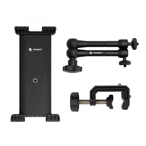 タブレットホルダー、マジックアーム、クランプがセットになっており、三脚の脚部やテーブルに取り付け撮影等が可能です