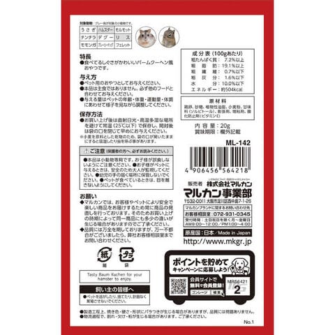 マルカン ハムタ食堂 はむはむハームクーヘン (20g) [ペットフード]