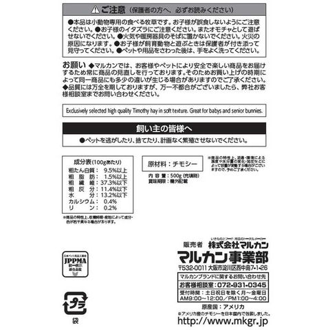マルカン うさぎ元気バニーグレードチモシーソフト500g