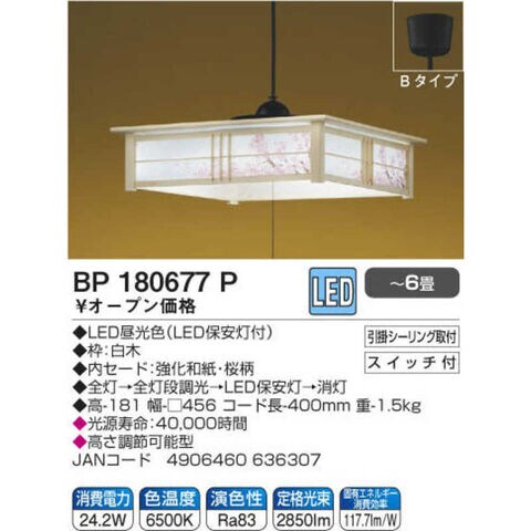 コイズミ KOIZUMI LED照明 和風ペンダントライト 6畳 昼光色 BP180677P