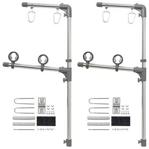 仕様1:■本体サイズ: 使用時/約幅16×奥行65×高さ107cm■本体重量: 2.6kg■素材・材質: 本体/ステンレスパイプ(径29.4mm)、成型部材/ABS樹脂・PP樹脂、ネジ類/ステンレス・鉄(メッキ)■かけられる重さ: (全体)竿かけ数/4本(約30kgまで)