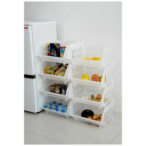平和工業 キッチン収納 積み重ねバスケット ストッカー ホワイト 335439