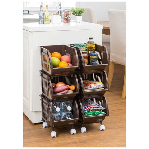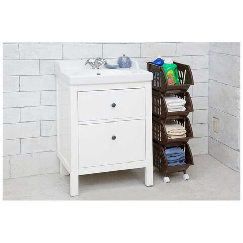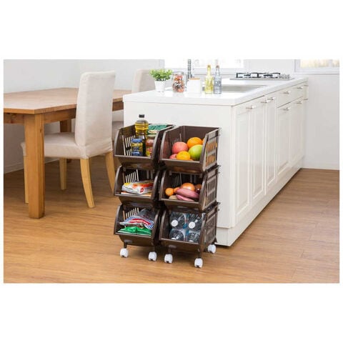 平和工業 キッチン収納 スリム 積み重ねバスケット ストッカー ブラウン 335440