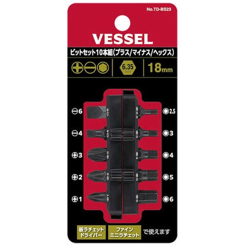 ベッセル VESSEL TD-BS23 ビットセット10本組(プラス/マイナス/ヘックス) TDBS23