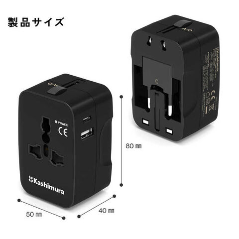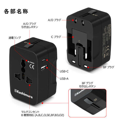 カシムラ 海外用変換プラグ A/C/O/BFタイプ USBA+C 2.4A WP-115M