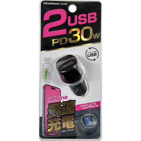 カシムラ DC42W USB 2ポート PD30W 自動判定 DC050