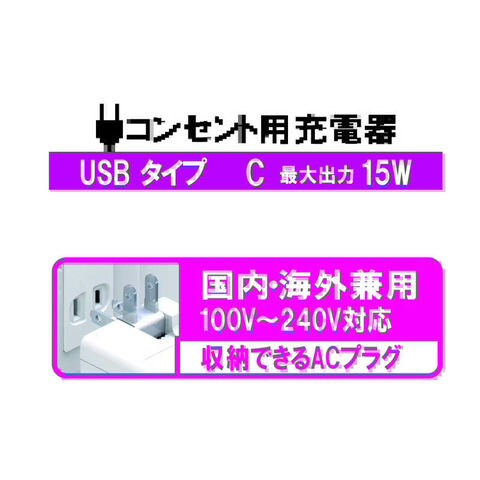 カシムラ 家庭用AC充電器 Type-C [AC005] AC-005