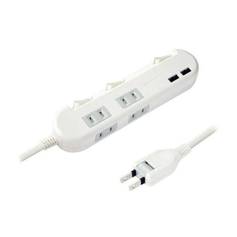●3.4A リバーシブルUSBポートが付いたスイッチ付きの電源タップ。