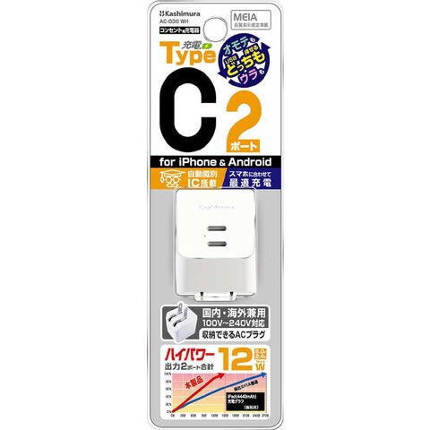 カシムラ AC充電器 コンパクト Type-C2ポート [2ポート] [AC036] AC-036