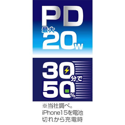 ●最大出力Type-C20W、USB-A2.4A、2ポート合計3.4Aの高出力