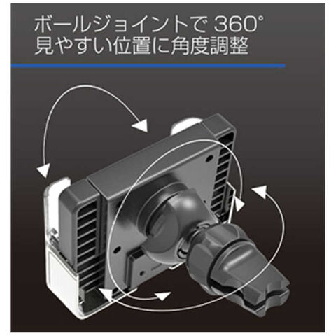ボールジョイントで360度角度調整ができるエアコン用スマートフォンホルダー。