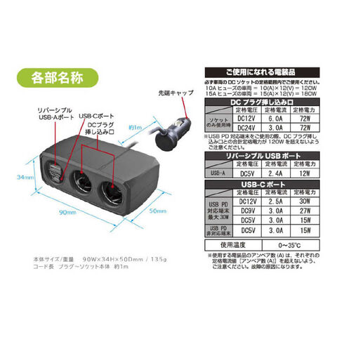 カシムラ 2連セパレートソケット PD30W/ リバーシブルUSB自動判定 KX-247