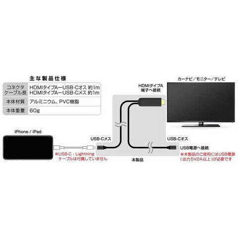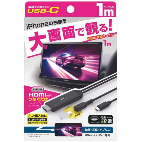 カシムラ 1m HDMI変換ケーブル iPhone専用 USB-C中継 [Type-Cオス・オス /HDMI] KD-265