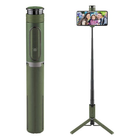 簡単な操作でスマホ用スタンドとしてもセルフィースティックとしても使える、便利な三脚付き自撮り棒です。