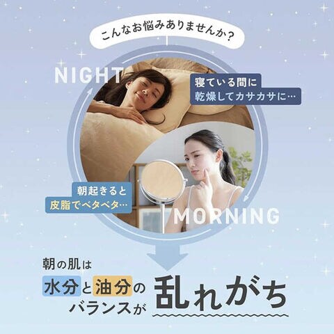 朝目覚めたての肌からテカリやべたつきの原因をオフし、うるおうふっくら肌に整えます。