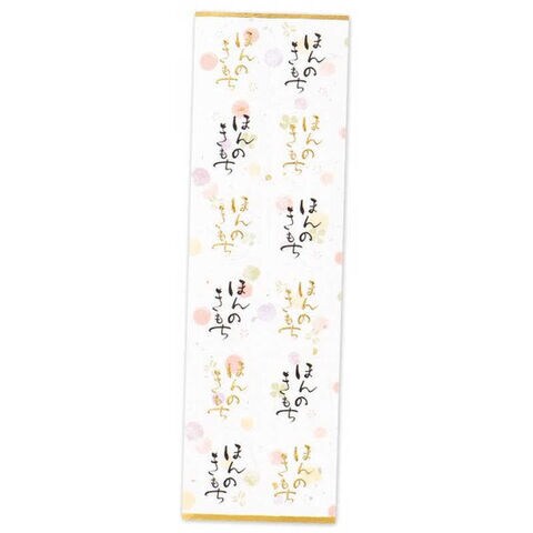 水玉と四葉のクローバーのイラストに、エンボス加工と金箔押し加工の「ほんのきもち」のメッセージが入ったシールです。