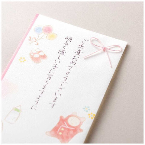 (ご祝儀袋、出産御祝、のし、おしゃれ、かわいい、出産後、お七夜、お宮参り、おくるみ、スタイ、哺乳瓶、靴、風船、花、ピンク、華やか、女の子)