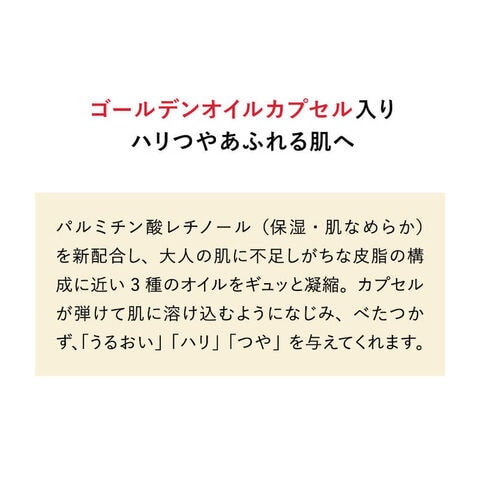 濃厚オイルがキメの奥までじゅわ~っと浸透。もちっとハリつや溢れる肌へ。