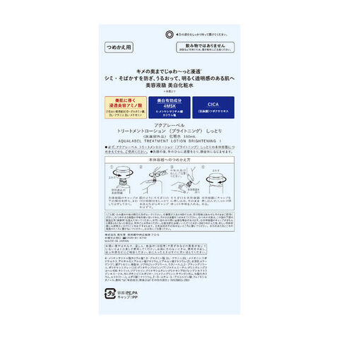 ●トリートメントローション (ブライトニング) しっとり (つめかえ用)は、必ず、アクアレーベル トリートメントローション (ブライトニング) しっとり の本体容器につめかえてから、ご使用ください。