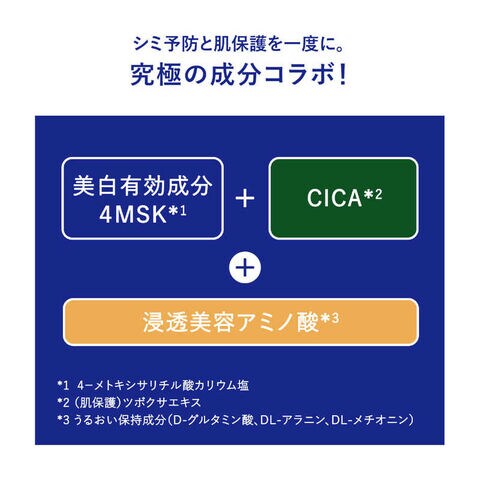 美白有効成分4MSK*がシミのもとに、直行。真珠のように艶めくベールで、ふんわり密封。シミ・そばかすを防ぎながら、うるおって、毛穴も気にならない明るく透明感のある肌へ、クリーム級 美白**乳液。